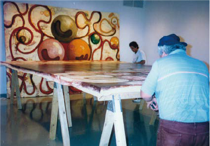 学生時代は、お金がないのでペンキでキャンバスに描いていました。キャンバスを壁に直接貼り付けて、出来が良かったらパネルや木枠に貼ることにして、後は寸法を測って自分で材木を切って木枠を作っていました。とにかく当時はでかい絵を描くということに燃えていましたが、今思えば絵のサイズ自体にはそんなに意味はないなと思います。でも身体的に10メートルの絵を描くのと1メートルの絵を描くのは全く違うことなので、それを若いうちにできて良かったかなと思います。