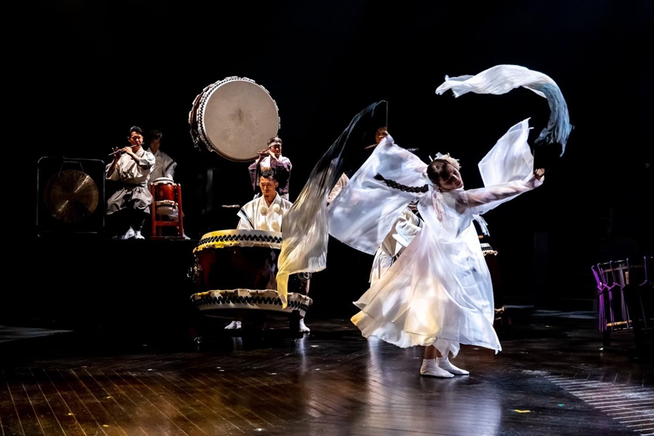 スペイン舞踊を軸に和洋に活動の翼を広げる加藤おりは。神谷俊一郎率いる組太鼓集団が初演した異ジャンル融合の舞台「ジッグラト」(5月14~15日、ちくさ座)にヒロインとして出演し、その後全国3都市を巡演した。自身が復興の立役者となった古代舞「五十鈴たたら舞」を磨き上げ、躍動する太鼓と超絶技巧の応酬、古代の息吹を現代に共振させた。加藤はさらに演出・振り付けした「弦・踏・舞」(12月21日、名古屋能楽堂)では、五十鈴たたら舞をソロ、群舞からなる単独の舞台作品として構成し、新境地を拓いた。