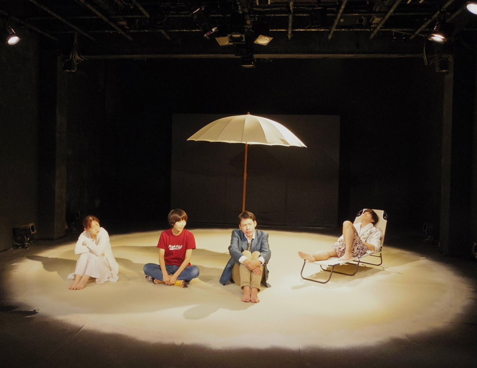 劇中には天文学や数学、少年少女、テキ屋…など北村らしい要素にあふれ、それらが小難しいやり取りやナンセンスな掛け合い、ひどい下ネタ、詩的なフレーズとなって乱反射する。今になってみると、防災や戦争にまつわる会話は予言めいた意味でも怖い。そんな世界を加藤は、円形舞台とパラソル1本のみの美術で象徴。極めてシンプルな空間に北村の言葉を浮遊させた。また4人の俳優も抑制の効いた演技で役柄と対峙。キャスト、スタッフそれぞれの作業に潔さのような美が宿り、不思議な感覚で満たされた。