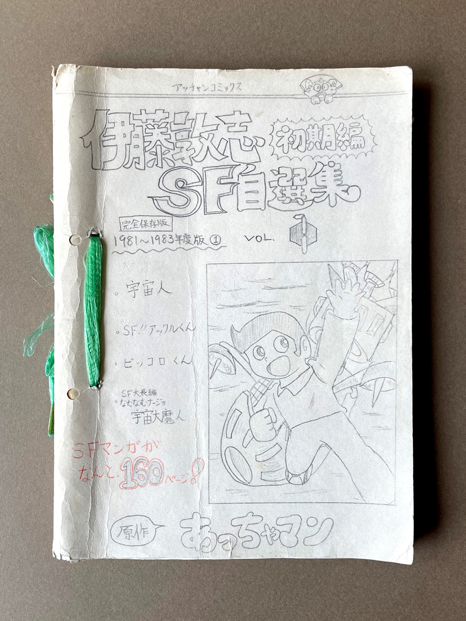 漫画が大好きでした。幼い頃は『ドラえもん』が好きで藤子不二雄オタクでした。4つ上のいとこの影響もあり、小学生の頃から古本屋で石ノ森章太郎や手塚治虫の古い漫画を探したり、お小遣いはほとんど漫画に使ってましたね。小学3年生からストーリーのある漫画を描き始めました。休み時間に教室で漫画を描いていると、皆が見に来てくれて嬉しかったです。これ(写真)は、小学6年生の時にそれまでに描いた漫画をまとめたものです。