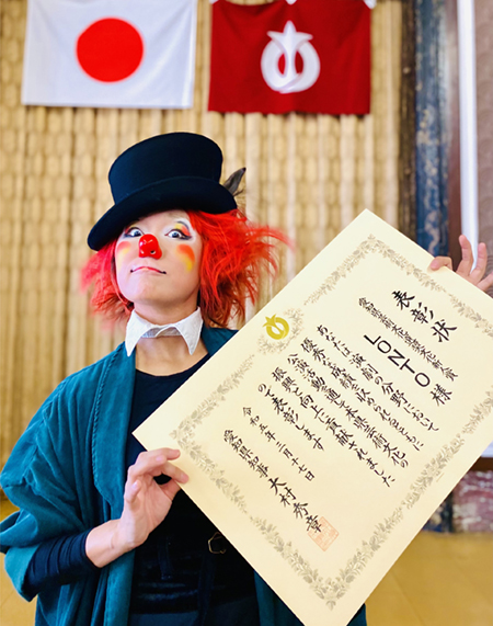 LONTO:高校では友達と同じ演劇部に入りましたが、ずっと裏方のスタッフをしていました。高校を卒業した後は就職しましたが、毎日同じような仕事をしているうちに、「自分はなぜここにいるのか」と悩み1ヶ月で退職しました。その後、自分の好きなことを仕事にしたいと思い、演劇か芸の道に進もうと決めました。〝演劇はひとりではできないけれど、芸人は自分ひとりでもできるのではないか″と考え、プロの芸人を目指すことにしました。芸の道に進むと決めてからは、独学でパントマイムの練習をしていましたが、クラウンの勉強もしておいた方が良いと思い、プレジャーB のクラウン養成講座を受講しました。