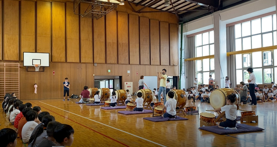 2000年に保存会の若手指導者7名を集め、新たなプロ集団「大治太鼓尾張一座」を立ち上げました。「日本の太鼓」「あいちトリエンナーレ2010~大祭2010~」「天皇陛下御即位奉祝・愛知県民祭典」など、様々な大舞台で演奏する姿を保存会の子どもたちに観てもらい、自分たちもプロ奏者になりたい! と憧れの存在になれるよう、座員一同で日々研鑽を積んでいます。次世代の演奏家育成は大切な課題と捉え、義務教育で太鼓を体験できる方法を模索するなど裾野を広げる活動も進めています。