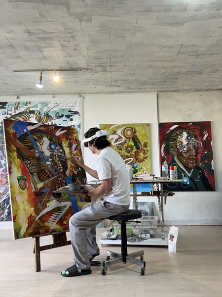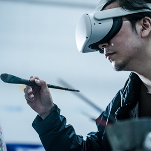 VRゴーグルがあれば、どこでもスケッチやパフォーマンスができます。タブレットに繋げばライブ配信も可能です。海外の展覧会へ出品するときも、通常の作品は高額な輸送費が掛かりますが、VR で制作した作品であれば現地の印刷会社で出力することでコストを抑えられます。従来は、目の前にある1つの作品をどれだけの時間で仕上げるかが勝負でした。リアルな絵が一点主義なのに対して、VR では作品を大量に制作し、手軽に出力できる点が魅力です。クオリティは全く同じで、大小さまざまなサイズの作品ができます。複製やSF も好きなので、いろいろな次元で展開できるVR での表現に新たな可能性を感じています。