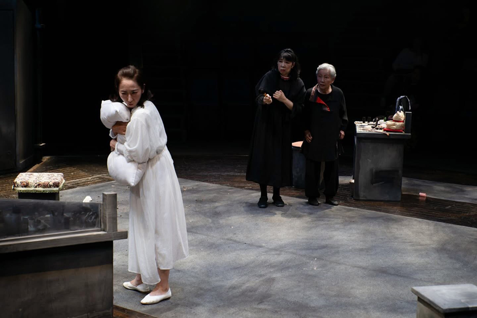 ロルカ作「ベルナルダ・アルバの家」の公演中(中央)